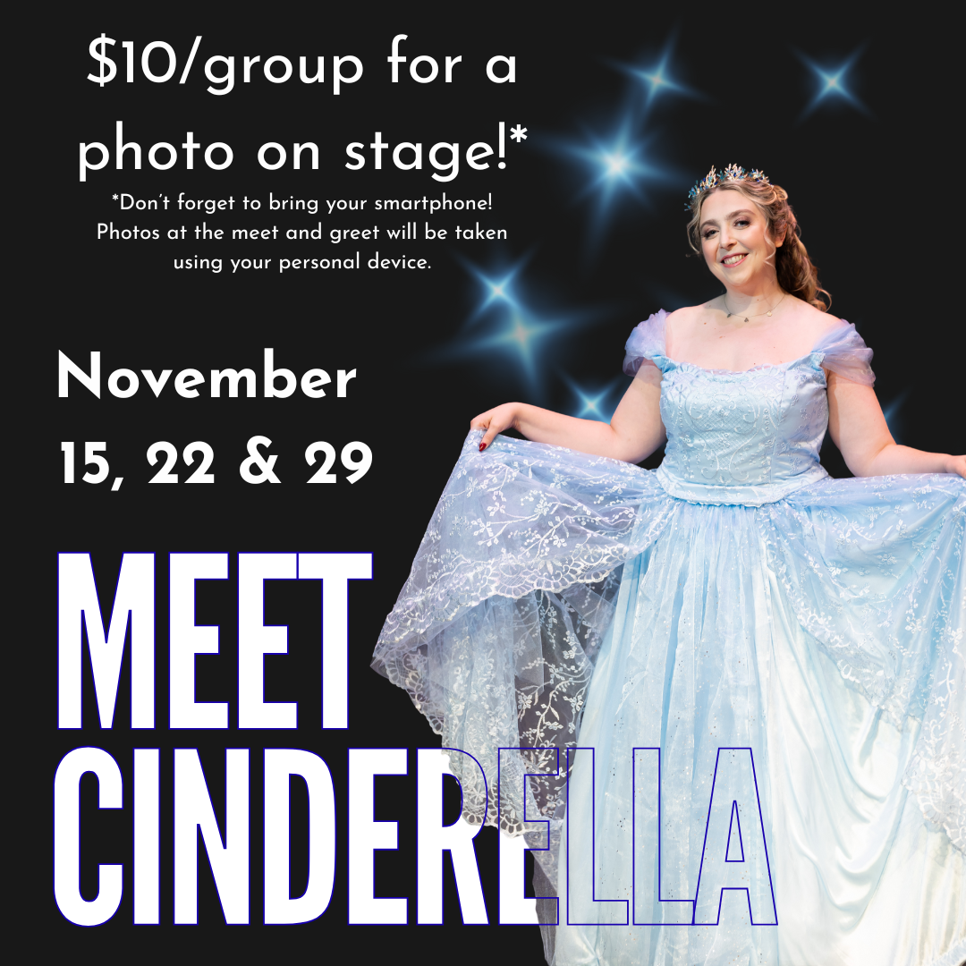 Join us on stage after the matinee performance for a special opportunity to meet Cinderella, take photos, and enjoy a magical post-show experience.