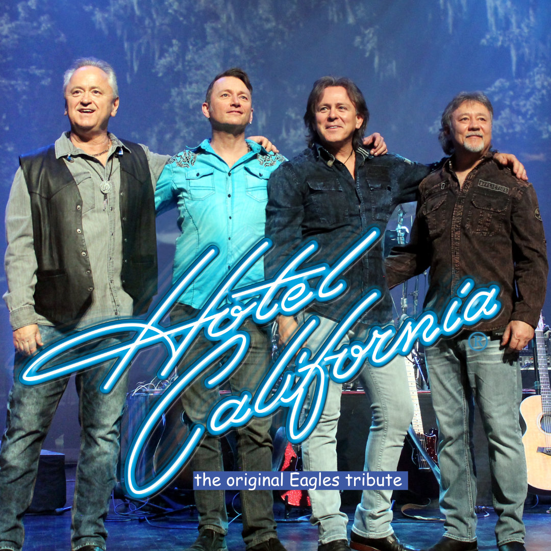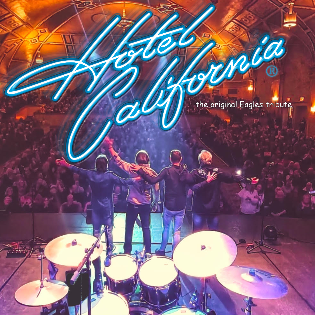 For almost three decades, HOTEL CALIFORNIA has been re-creating the legendary sound of THE EAGLES, and thrilling audiences all over the world. The band set the bar in 1986, and they’ve remained the industry leading substitute for The Eagles ever since. Playing to huge outdoor and arena audiences, sharing bills with some of rock’s legends, and going places no tribute band has gone before. incredible lead vocal similarity, intensely accurate instrumental work, soaring harmonies, and a top flight live performances. HOTEL CALIFORNIA’s show has evolved into a masterful celebration of The Eagles’ music. One of the most game-changing song catalogs in the history of rock n’ roll is performed to perfection. You can check them out any time you like, but you’ll never want to leave. If you love The Eagles, then welcome to the Hotel California – you’ve just found the next-best thing.